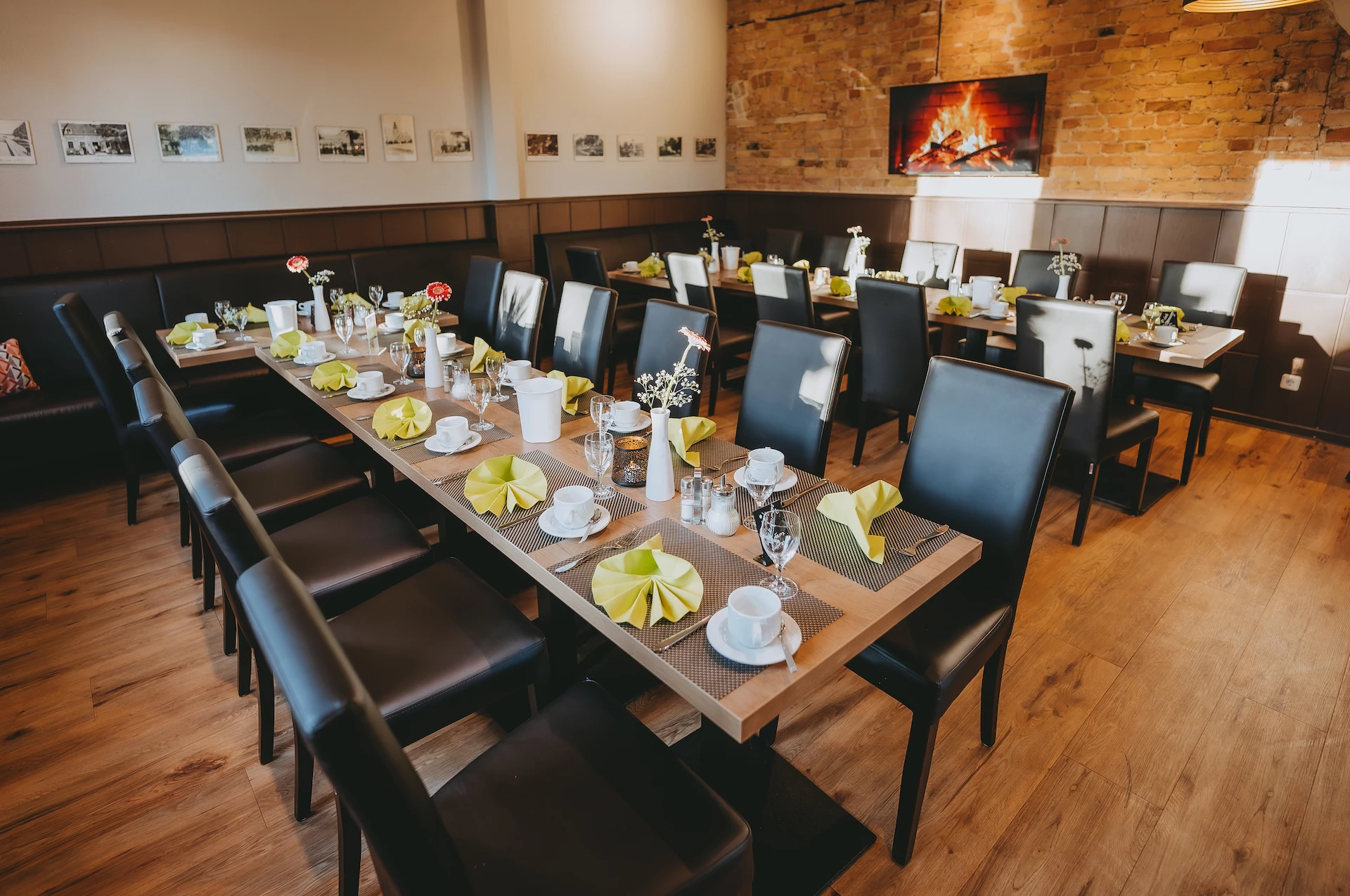 Feiern Sie in unserem Kaminzimmer mit 32 Sitzplätzen sowie bis zu weiteren 20 Sitzplätzen im vorderen Bereich. Für den kleineren Kreis bietet das Gewölbe die passende Räumlichkeit für bis zu 25 Gäste. Bei schönem Wetter bietet unser Biergarten eine gemütliche Atmosphäre.