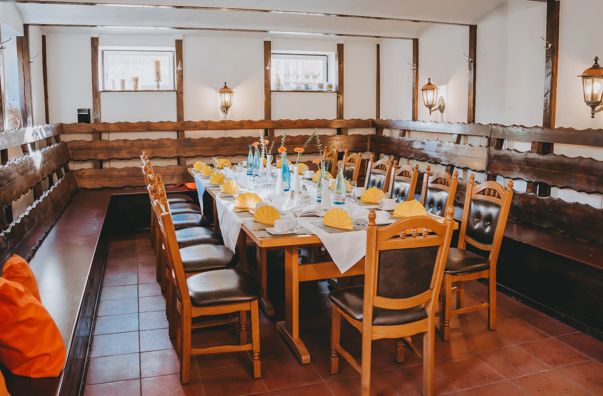 Unser Restaurant bietet den idealen Rahmen für gesellige Runden für bis zu 52 Personen, während der gemütliche Biergarten mit weiteren 50 Plätzen die perfekte Kulisse für laue Sommerabende bietet. Für eine Extraportion Atmosphäre steht unser uriges Gewölbe mit bis zu 25 Plätzen bereit, um Ihre Feier in ein einzigartiges Erlebnis zu verwandeln. Der Gastraum ist ausgestattet mit Tischen, Stühlen und Bildschirmen. Weiteres Equipment stellen wir Ihnen auf Anfrage gerne zur Verfügung und wird entgeltlich abgerechnet.