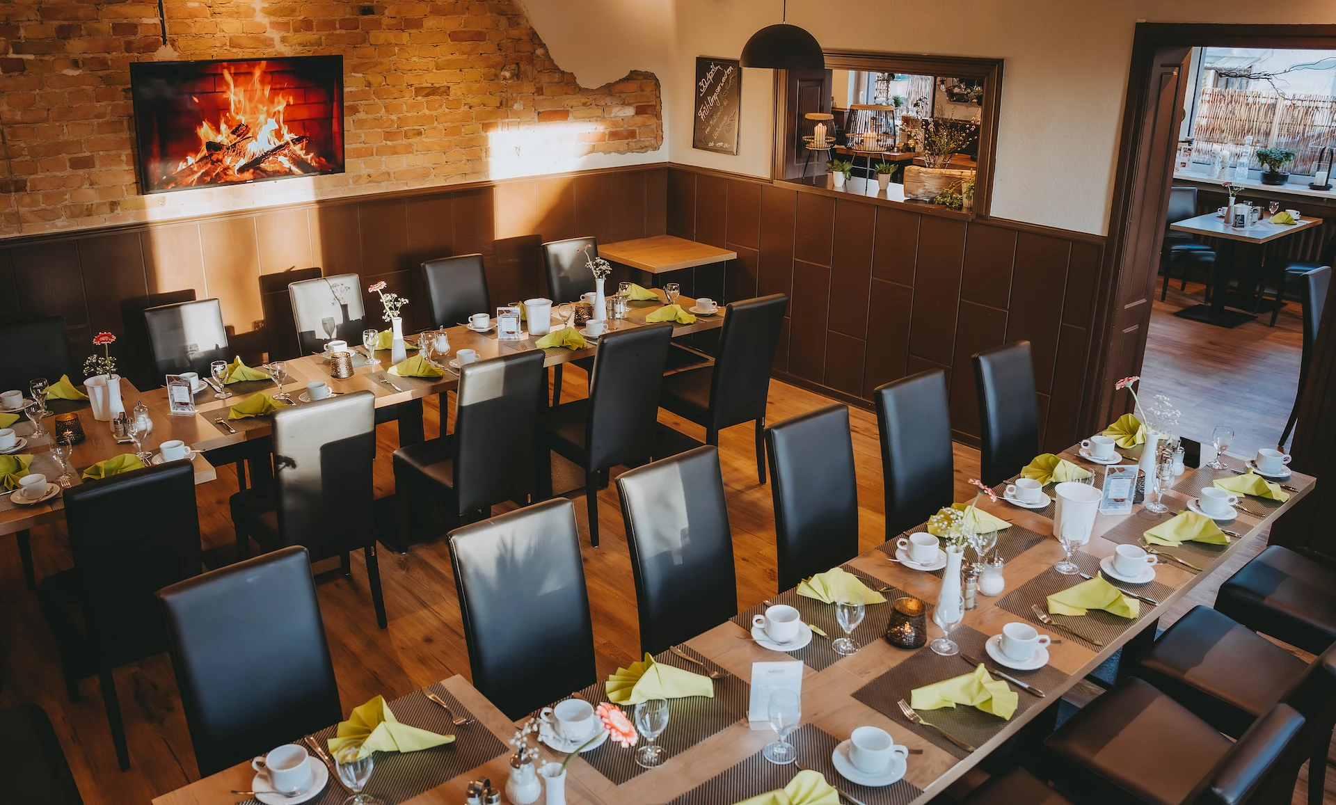 Feiern Sie in unserem Kaminzimmer mit 32 Sitzplätzen sowie bis zu weiteren 20 Sitzplätzen im vorderen Bereich. Für den kleineren Kreis bietet das Gewölbe die passende Räumlichkeit für bis zu 25 Gäste. Bei schönem Wetter bietet unser Biergarten eine gemütliche Atmosphäre.